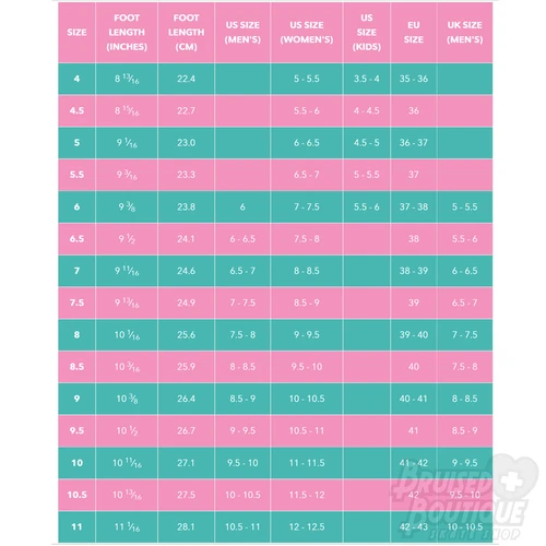 US Men’s sizes Sizes 4-11 Full & Half sizes. Medium Width.