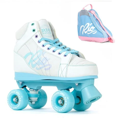 Rio Roller Lumina Quad Roller Skates – White/Blue – Script Bag Package